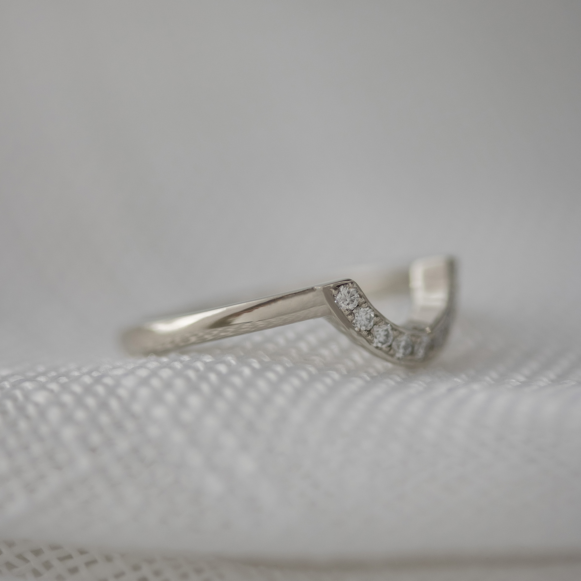 A half-round contoured band with (9) bead set diamonds in a 14K white gold polish.