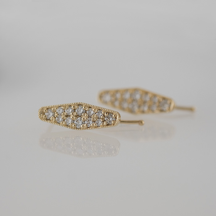 Pave climber diamond earrings in 14K yellow gold.